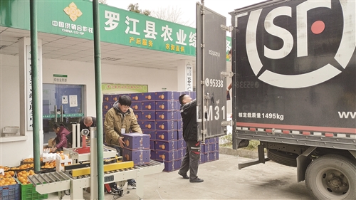 2月20日,在位于四川省德阳市罗江区供销合作社院内的四川天府网农电子商务公司,工人们正把罗江“春见”过秤装箱,发往全国各地。“春见”俗称耙耙柑,因高糖、优质、果大、丰产而受欢迎。2014年,罗江区通过农民专业合作社开始引进种植耙耙柑,目前已种植3万余亩,今年产量近1万吨。为帮助果农打通销售渠道,罗江区社社属企业四川天府网农电子商务公司和阿里巴巴、顺丰速运等物流公司广泛合作,做好罗江“春见”的网上推广、销售工作。截至目前,通过顺丰“大当家”等电子商务平台已销售罗江“春见”1.5万余件,销售收入突破100万元,产品销往北京、上海等25个省份130余个市(州)。