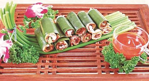 点评:培根卷外层被浸泡了绿茶香味的粽叶包裹,美食也玩起了含蓄,任你怎样猛吞口水,也要一层层拨开粽叶才能享用。