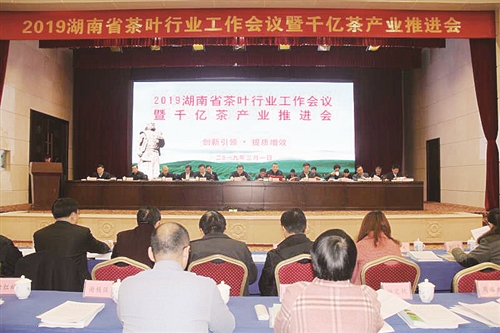 3月1日,由湖南省茶业协会组织召开的“2019湖南省茶叶行业工作会议”在湖南宾馆举行。湖南省产茶市、州、县市区政府领导、农业农村局、茶叶局(办)、供销社及协会负责人、茶叶企业代表等共计五百余人与会。本次会议以“坚持创新引领、提质增效,加快千亿产业建设步伐,促进乡村振兴”为主题,总结2018年湖南各地茶产业的发展经验,研究确定下一步湖南茶产业发展的目标与任务,并对湖南茶叶行业2019年度工作进行了部署。