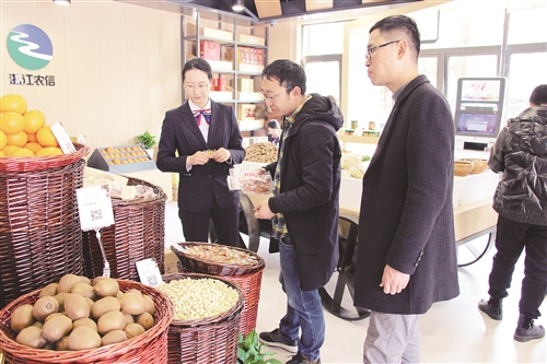 来宾们饶有兴致地参观了店内的文化宣传区、农产品展示区、金融服务区,与智能机器人对话,了解丰收驿站代购代销特色农产品的情况,体验相关金融业务的办理。