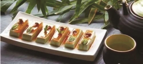 5.将煎好的豆腐下锅,加入少许的糖、盐和茶叶汁(可多准备一些,以防煮干)烧煮至入味;
