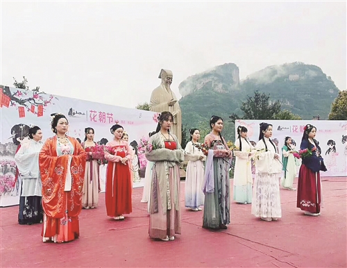 正当百花盛开,春茶即将采摘季节,3月23日,武夷山市在中华武夷茶博园举行花朝节汉服游园活动,吸引了数千名游客冒雨观看。园内广播反复播送岩茶史话节目,增进游客对武夷岩茶的了解。几十家茶企摆开阵式,热情地为游客提供免费茶。来自浙江金华的游客蒋丽高兴地说,武夷茶博园茶文化氛围十分浓郁,看了令人耳目一新的汉服表演,参观了栩栩如生的茶史景点,我们感受到武夷岩茶的博大精深,真不虚此行。