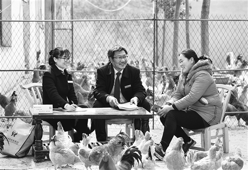 湖北枣阳农商银行积极服务乡村振兴战略,大力支持农村种养大户、家庭农场、专业合作社,累计投放农户及农村经济组织贷款10.61亿元,为助力乡村振兴注入了金融活水。图为该行信贷人员到新市镇养鸡大户家开展贷后回访。