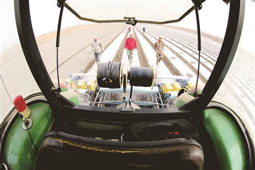正值春播时节,位于新疆巴音郭楞蒙古自治洲铁门关市各族群众抢抓气温回升的有利时机,按照“节水、精棉、优质、高产”的要求,应用装有卫星定位导航系统的智慧农机高精度播种棉花,提高了耕地利用率,加快了棉花播种进度。