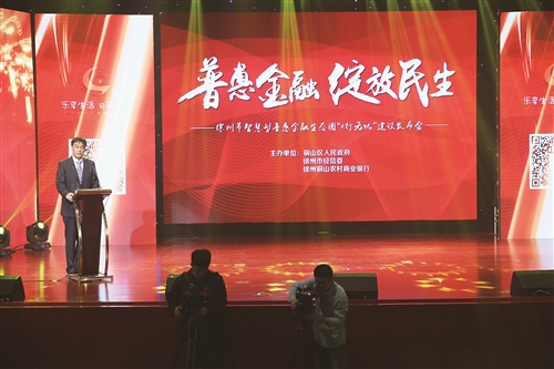 图1为徐州铜山农商银行董事长骆新超在“e行无忧”发布会上致辞。