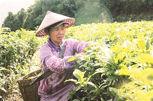 近日,湖南永州宁远县棉花坪柑子源高岭茶叶种植专业合作社的瑶胞正在忙着采摘“谷雨茶”。据合作社负责人冯继红介绍,棉花坪柑子源种植基地海拔千米,云雾期长,茶叶品质佳。近年来,该基地采取“合作社+茶农+基地”的模式,茶园全部实现有机种植生产。目前,已认证无公害有机茶园面积400亩,年产值达250万元,茶园已变成了瑶胞名副其实的“聚宝盆”。