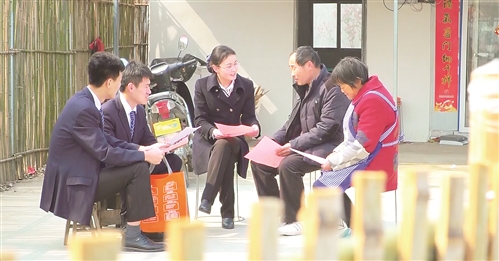图2为泗阳农商银行客户经理走村串户,向广大种养殖户普及金融知识。
