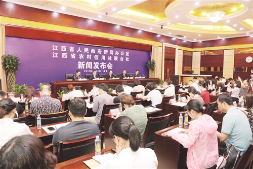 5月24日,江西省农村信用社联合社“服务实体经济 助力兴赣富民”新闻发布会在江西省人民政府新闻发布厅召开。江西省农村信用社联合社党委书记、理事长孔发龙出席新闻发布会并作发布,江西省政府新闻办对外新闻处处长陈惠龙主持会议,江西省农信联社运营总监王学锋、办公室主任吴晓、信贷管理部总经理邹强参加发布会并回答记者提问。