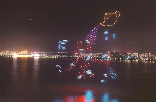 5月29日晚,600架无人机在江西九江八里湖上演了一场无人机灯光秀。在璀璨的城市光影背景下,无人机编队不断变换出庐山剪影、云雾茶苗、采茶姑娘、天下第一泉等画面,演绎了一场光彩夺目的“茶泉”双秀,绚丽的灯光和色彩瞬间点亮夜空。