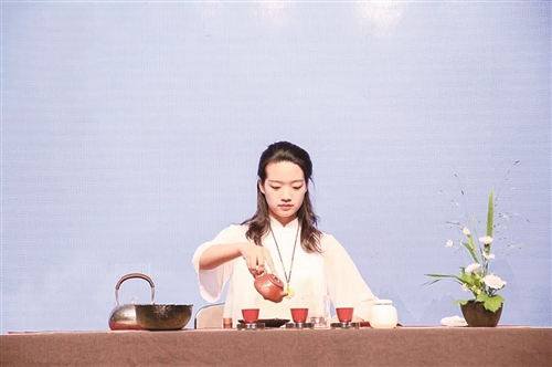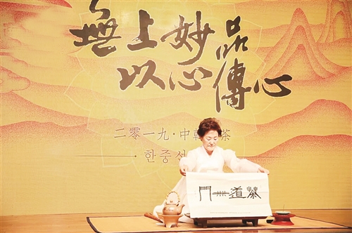 活动现场,中韩茶艺师还展示了各具特色的茶道表演。