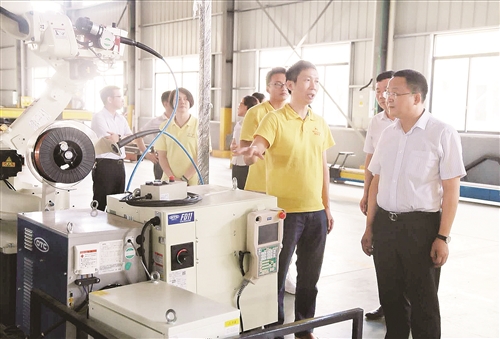 图为漳州农商银行党委书记、董事长王惠山(右一)到企业调研。