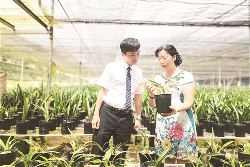 图为漳州农商银行工作人员到兰花种植企业回访。