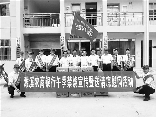 同时,该行还在售粮规模较大的站点提前设立爱心服务站,准备好防暑药品、应急防雨棚、矿泉水、点钞机等物品,并积极履行社会责任,印制环保禁烧宣传材料1万余份,集中开展午季禁烧宣传暨送清凉慰问活动。
