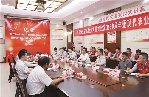 2019年6月28日,潍坊市农村信用合作社联合社携手寿光农村商业银行在寿光市孙家集街道三元朱村举行了“纪念寿光首笔蔬菜大棚贷款发放30周年暨现代农业园区设施贷款新产品发布会”,共同回顾金融服务寿光蔬菜产业发展的蓬勃历程,共同展望金融助力乡村振兴战略的宏伟蓝图,发布系列现代农业园区设施贷款新产品,助推寿光“农业园区化”发展,蔬菜产业提档升级,支持寿光现代农业发展再出发,为创新提升乡村振兴“寿光模式”贡献力量。