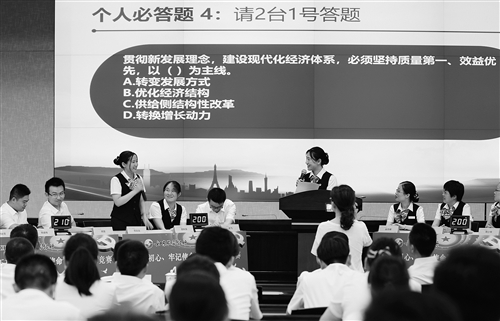 日前,江苏如东农商银行举办了“不忘初心、牢记使命”党建知识竞赛决赛。竞赛采用现场答题的形式,设个人必答题、代表队必答题、抢答题、风险题、观众互动题等类别,内容涵盖《中国共产党章程》《党的十九大报告》《中国共产党廉洁自律准则》和《中国共产党支部工作条例(试行)》等党建知识。