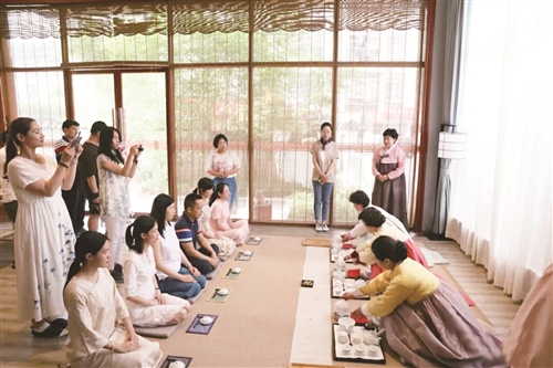 近日,武夷山骏德茶企在正山小种文化体验交流中心为韩国茶友表演红茶茶艺。