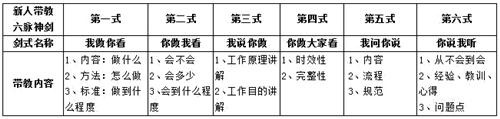 新人实战带教,是一个完整的作业闭环。结合多年茶行业营销服务经验,厦门同航咨询机构总结出茶行业新人实战带教“六脉神剑”模式。(见“六脉神剑”表)