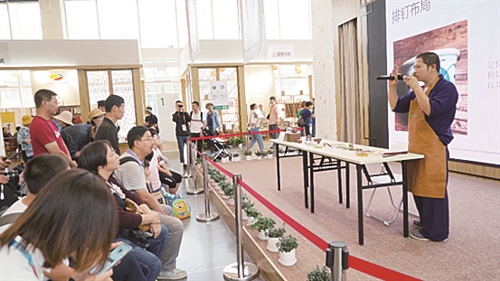 锔缮即锔瓷和金缮。金缮与锔瓷是两种不同工艺,都是为了修复器物而生。茶具修复艺人陈光旭在茶文化体验馆讲解了锔瓷和金缮在原理及流程,并现场演示了锯缮的工具用法,展现了锔缮的技艺,吸引了众多游客的关注。
