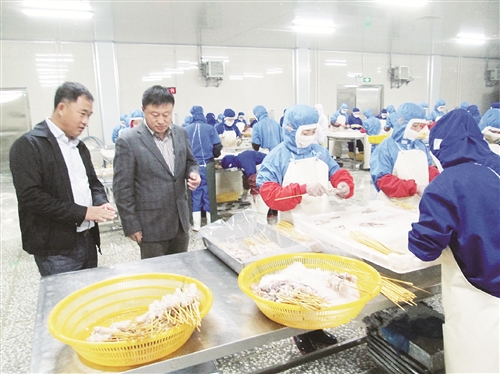 两年前,在九台农商银行的推动下,茂林村与“九台商会农村产业扶贫联盟”中的两家企业成功对接,成立了农工商公司。随后,由九台农商银行向该公司提供贷款,助其流转茂林村、庙岭村两个省级贫困村的土地561公顷,并联络吉林省农科院,帮助其研究制定绿色产业发展规划,成立了绿色农产品加工厂,申请注册了“九商茂林”商标,聘用30多名建档立卡贫困村民入厂工作。