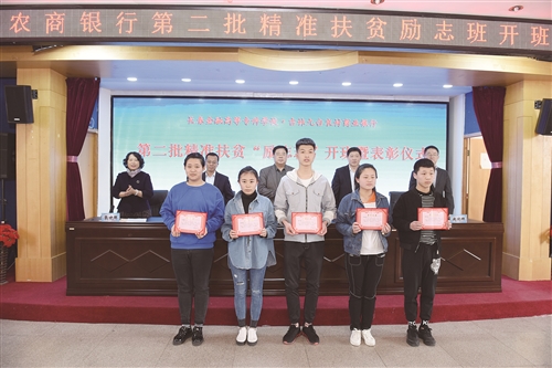 “希望大家励志成为奋进新时代、扎根黑土地、服务新农村的青年才俊,尽快成长为服务乡村振兴的中流砥柱……”在九台农商银行首届“精准扶贫·金融励志班”毕业典礼上,九台农商银行党委书记、董事长高兵对即将奔赴农村金融一线的50名学子不倦叮嘱着。