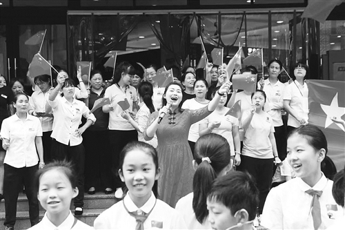 据悉,本次活动包括大型合唱《我宣誓》、少儿诗朗诵《壮哉!中国》、古筝演奏《爱我中华》及女声独唱《我爱你中国》四个篇章。近百名华联干部职工激情歌唱,将祝福与心愿融入歌声,表达对祖国最深切的爱。嘹亮动听的歌声引得现场群众纷纷转身注目,众人挥舞着手中的五星红旗,纷纷加入进来,随着音乐齐声高歌,在高亢雄浑的旋律中抒发心中的爱国热情,共同祝愿伟大祖国繁荣昌盛。
