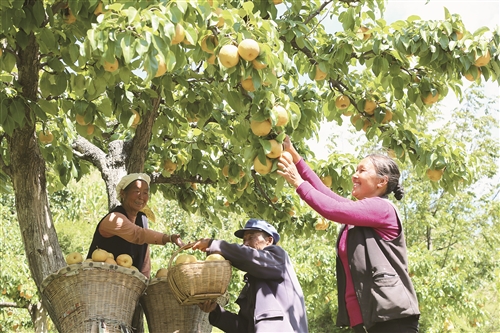 日前,贵州省威宁县哈喇河镇供销合作社生产的“威宁大黄梨”喜获大丰收,产梨60万斤,收入350万元,带动2个村贫困群众264人增收。据悉,“威宁大黄梨”是中国八大名梨。哈喇河镇供销合作社组织贫困户在哈喇河大黄梨产业示范园区利用土地流转和打工方式增加收入。
