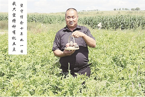 太仆寺旗宏胜村是当地政府重点打造的有机土豆种植基地及优秀脱贫村。宏胜村苏二兵同志带头坚持种植有机土豆,为打造健康绿色的品牌,十年如一日,坚持不使用化学肥料、农药、生长调节剂,不使用转基因技术等,保证其无污染原生态营养成分,并获得有机认证证书。近年来,苏二兵共带动全旗6个乡镇、16个村、723户贫困户实现脱贫,实现自己最初的梦想。