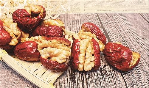 成县枣夹核桃选用天然雪水灌溉的新疆若羌红枣,和高海拔碱性土壤种植的成县核桃。成县素有“核桃之乡”的美誉,成县核桃大而皮薄,核桃仁浅黄或琥珀色,肥厚饱满,口感香酥可口。产品富有维生素C、维生素B、有机酸、尼克酸等多种营养物质,适合学生族、上班族以及中老年人群体。