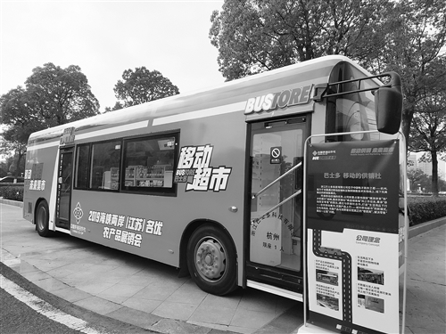 10月18日,在江苏省盐城市举行的2019海峡两岸(江苏)名优农产品展销会上,一辆新能源智能化无人售货大巴停放在展馆入口处。据悉,该车由10 米低地板纯电动大巴改装而成,通过移动店铺和互联网销售技术实现了线上线下融合的新销售模式,既能下乡丰富农民购物选择,又能进城助农销售生鲜产品,目前,该模式已通过江苏部分市县供销合作社落地运营。
