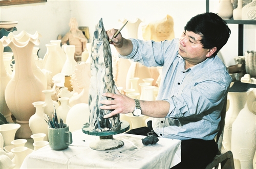 王振宇,1975年生于河南汝州。自幼师从汝瓷专家马永杰先生学习绘画基础和汝瓷雕塑造型技艺,1995年进入汝州市国营汝瓷厂工作,1997年成立王家汝瓷工作室至今。国家级高级工艺美术师 ,国家级陶瓷领域高级技师, 国家级非物质文化遗产项目汝瓷烧制技艺代表性传承人。