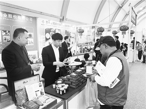 本报讯  日前,为深化贵州省与日韩在农业领域的交流,拓展与日韩两国农业相关部门及机构、农产品贸易企业间的务实合作,助力“黔货出山”,贵州省外事办邀请贵州省供销合作社组织各市县供销合作社、直属单位参加了韩国全罗南道2019国际农业博览会,并赴日拜访日本农林水产省。此次出访,余庆供销电子商务有限公司、麻江县供销合作社资产管理中心、贵州省福泉市福江农业发展有限公司、都匀供销产业发展(集团)有限公司、贵州武陵山药业股份有限公司、贵州茅江酒业股份有限公司、黔南州供销合作实业(集团)有限公司等供销合作社社有企业,带去了茶叶、蓝莓加工品、中药材、竹笋、大米、食用菌等各色农产品,受到了日韩民众的欢迎。此次出访有助于供销合作社及社有企业更好地了解当地的风土人情与饮食习惯,为日后市场开拓奠定基础。图为贵州合作社的产品在农博会上受到当地民众的关注与肯定。