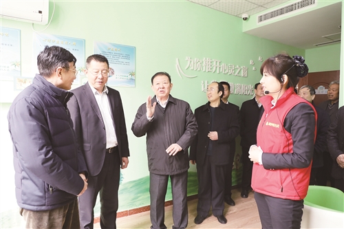图2为山东省农村信用社联合社党委书记、理事长孙开连(右)在“太极文化”主题银行调研。