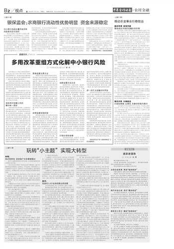 多用改革重组方式化解中小银行风险