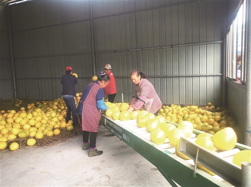 11月17日,贵州省遵义市播州区泮水镇第四届蜜柚文化节暨特色农产品推介活动在该镇西安社区举行,播州区供销云电子商务有限公司受镇政府委托,继续通过电商渠道销售蜜柚。据介绍,去年公司通过各电商平台销售蜜柚32万斤。今年柚子迎来盛产期,公司从10月起就积极对接柚子基地,于11月1日凌晨正式在京东、淘宝、有赞、拼多多等平台上架预售,截至11月15日,已销售柚子7.3万斤,预计今年至少能销售80万斤。图为农户正在清洗蜜柚。