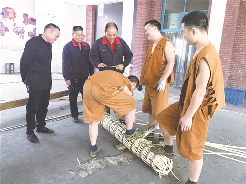 白沙溪茶厂为传承国家非物质文化遗产——安化千两茶制作技艺,积极打造踩制千两茶年轻技术队伍,旨在让非遗技艺一代一代传下去。每年踩制时期,为了赶时间、赶生产任务,公司都是使用熟练工人,各自组成一组,定时定量,一个班踩制千两茶20支,新员工只有看的份儿。这次专门挑选7位年轻员工,组成一支杠队,安排两个师傅现场边踩边教,每人轮流执杠,踩制1支千两茶,每天完成踩茶10支。看速度、看外型、看紧实,逐渐熟悉掌握全部踩制工艺流程。平时在舞台表演,他们走南闯北参加过好多次,可真正踩成一支完整的千两茶对于他们来说还真的有点难。他们都是家中娇宠的孩子,其中大多数为“80后”,平时习惯了岗位的流水线机械化生产,但踩千两茶真的是一项劳动强度大、团队配合性强的粗重活。篾篓、棕片、蓼叶子稍不留心就勒到手,划个口;棍棒、大杠重力绞压,几天下来,腰酸背疼;纳口开砖,手上起泡,渐渐磨成了层层硬茧,鼓出了肌腱,他们就这样从开始踩制一支茶1个多小时慢慢到50分钟、40分钟……