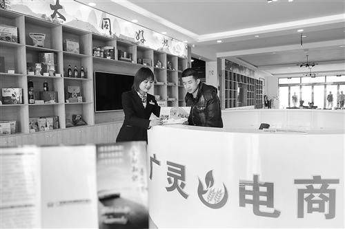 山西省广灵县农村信用合作联社与电商企业紧密协作,走出一条“金融扶贫+电商扶贫”相结合的精准扶贫新路径。近日,广灵县联社员工深入广灵县电子商务服务中心普及金融知识,了解“大同好粮”线上销售情况。